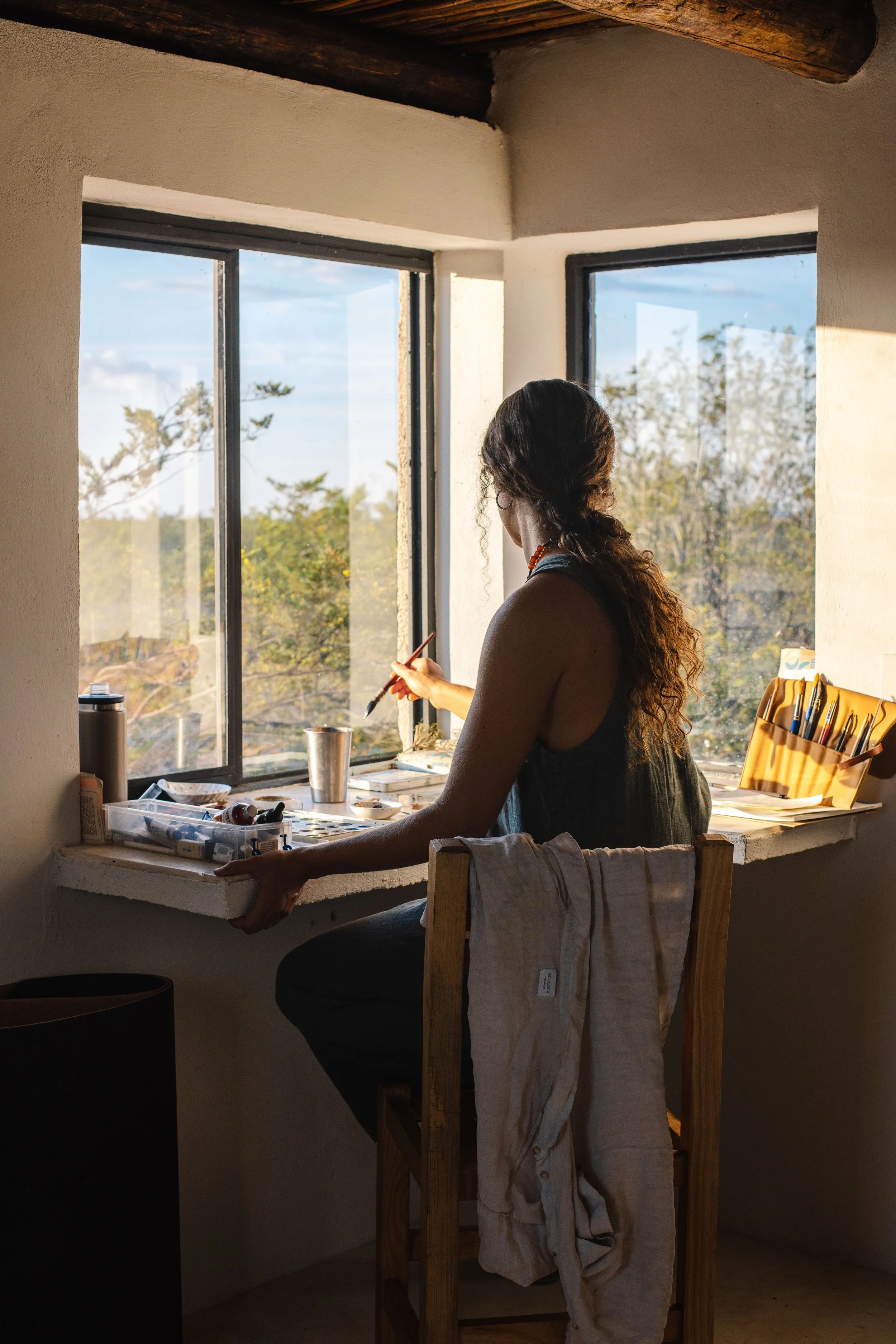 "Being in the desert and disconnecting from the world is a luxury these days. And I can’t get enough, time seems to move at a different rhythm. You move with nature and life becomes a moving prayer. It’s a place to find yourself, your true authentic voice and create from the deepest depths. Going past the ego. There is nothing here so you have to find it all within."